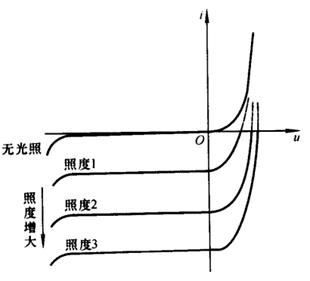 光電二極管,利用在反向電壓一定時(shí),反向電流隨照度的增大而增大。這種特性廣泛用于遙控、報(bào)警及光電傳感器。伏安特性曲線(xiàn)見(jiàn)圖(4)
